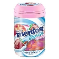 Keo nhai Mentos vị sữa chua dâu 90g - hũ